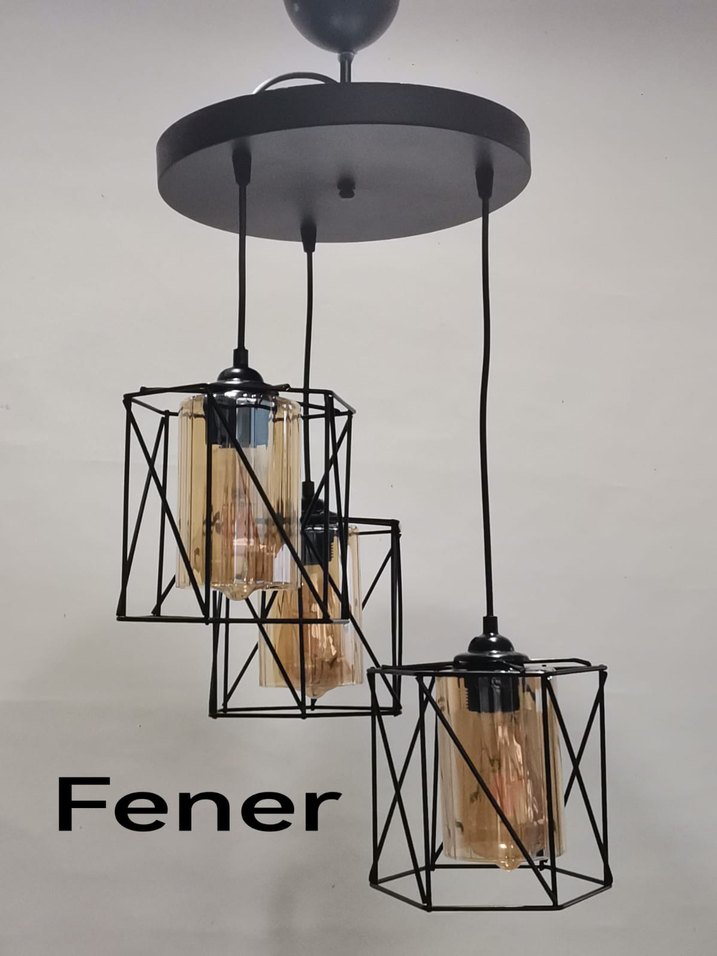 Bej renkte Diger marka, üç kafes tarzı ışık ile donatılmış modern endüstriyel tasarımlı avize. ️3.2.1 şeklinde kampanyalı satıştadır