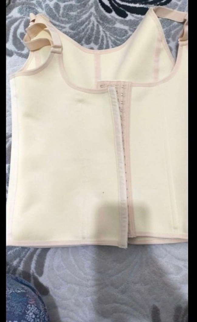 Pastel bej renkte, dikişsiz ve normal midi boyda, vücuda oturan korsettir.