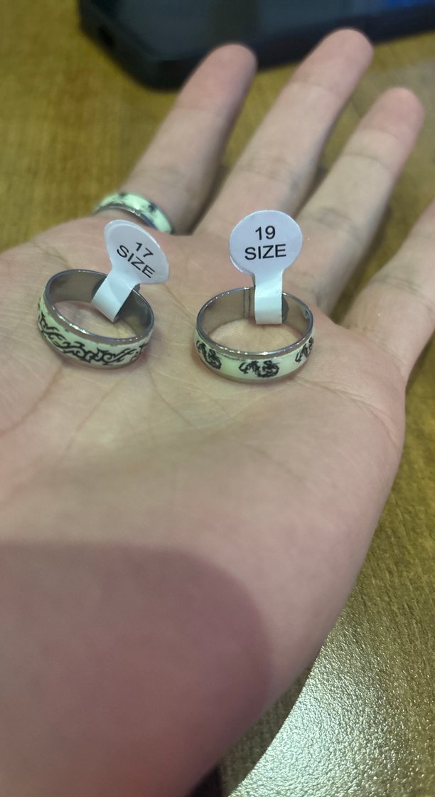 Bej renkli, elastik bantlı renkli baskılı vintage bohem tarzda ünisex yüzükleri.17 ve 19 numara, düğün ve retro görünümler için uygun. Marka yoktur