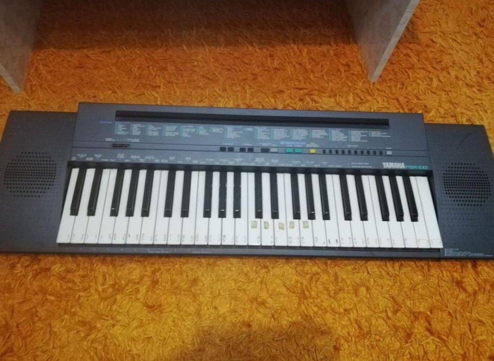 Bej renkli elektronik klavye, farklı ses ayarları için kontrol paneline sahiptir.