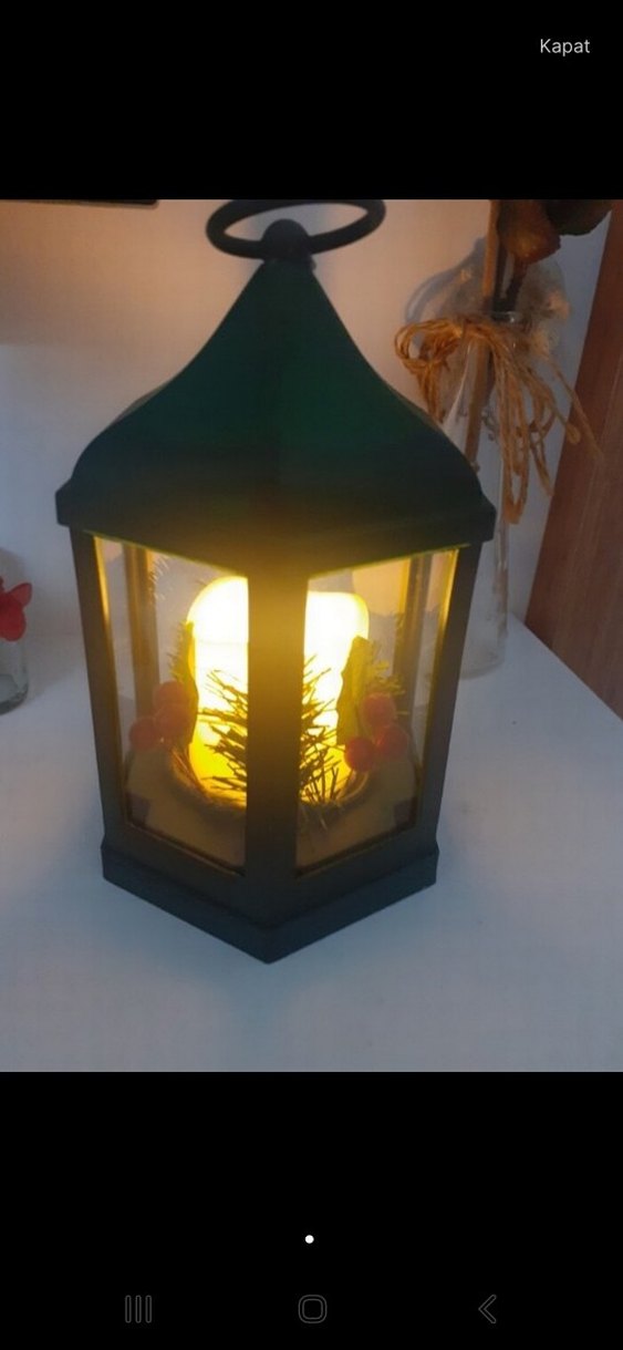 Cam panelli ve iç kısmında dekoratif detaylar bulunan bej renkli fener mumluk, sıcak ve huzurlu bir ışık sağlar. ️
