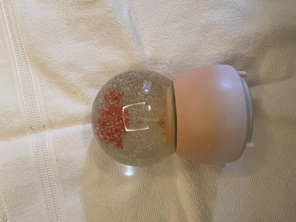 İçinde kırmızı parçacıklar bulunan şeffaf küreye sahip bej renkli büyük boy figürin. Mat ve sade tasarımlı bir yüzeyi vardır.