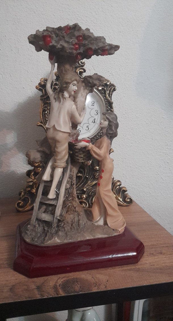 Bej renkte iki figürlü, ağaç ve merdivenli saat dekoru. Koyu renk detaylı şık kaideye sahiptir. ⏰