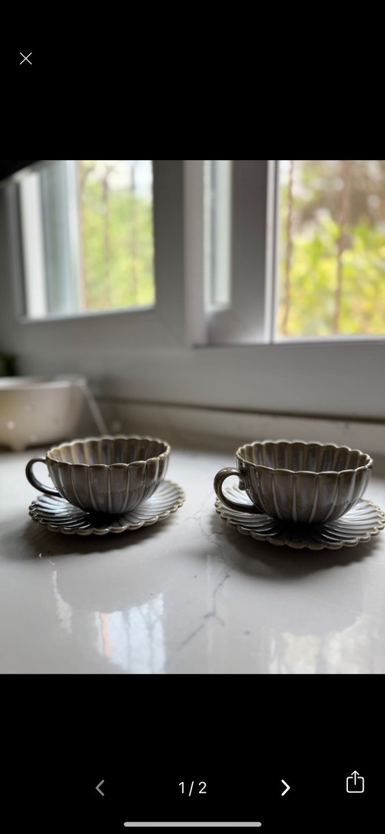 Bej renkli, gri detaylı iki adet vintage tarzı fincan ve tabak seti. Çay veya kahve için uygundur. Stokta olmayan bi ürün büyük boydur Fiore modeldir ☕