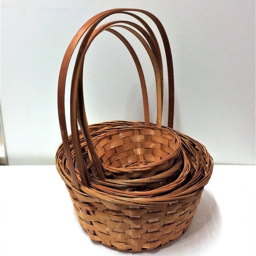 Dayanıklı saplı, bej renkli hasır sepet seti. Depolama ve düzenleme için uygundur, doğal dokusu rustik bir hava katar.