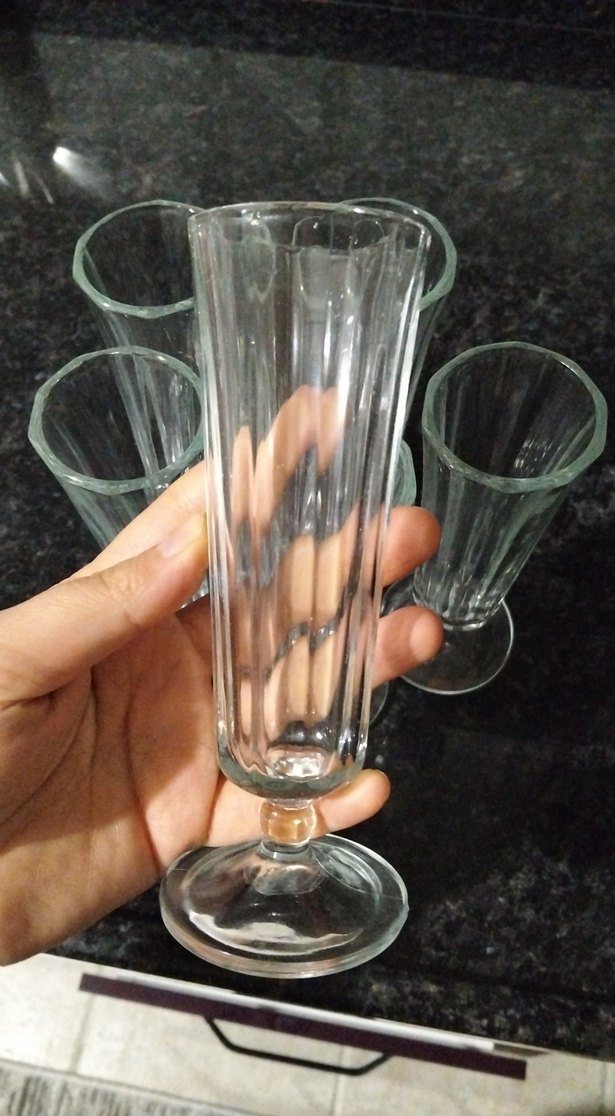 Ayaklı tabanlı, ince bej tonlu cam kadehler seti. Şeffaf, kabartmalı tasarımıyla içecek sunumuna uygundur. kahve yani kutusu yok