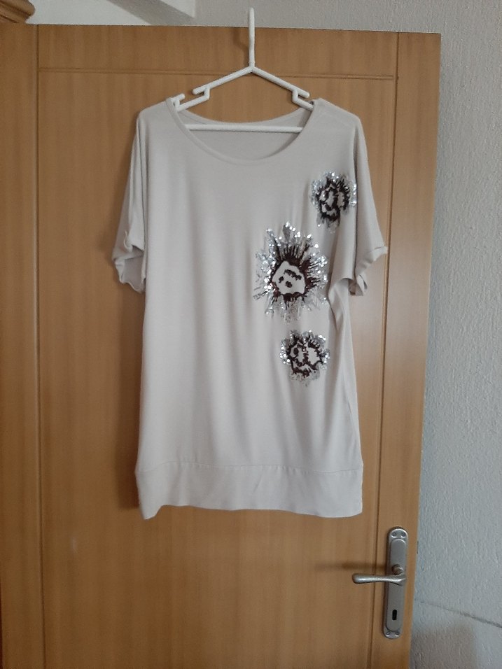 SIFIR Bej, kısa kollu, yuvarlak yakalı penye bluz Rahat kesimi ve isleme detayli günlük kullanıma uygun, yumuşak pamuklu kumaştan.Boy 82 cm koldan kola 60 cm hiç giyilmedi bedeni olmadigi için kusursuz