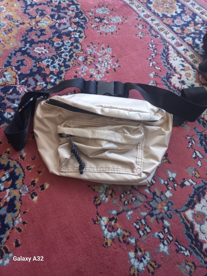 Bej renkli, kemerli kadın bel çantası, gündelik sokak stili için uygundur. Hafif ve desensiz görünümü vardır.