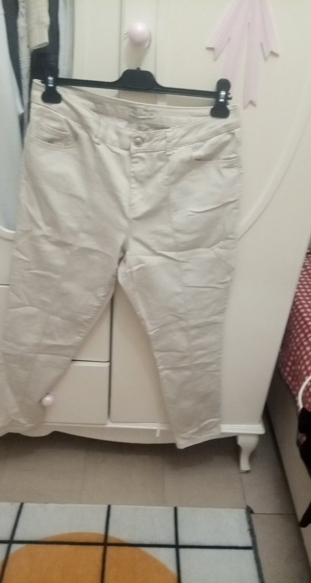 Kadınlar için bej renkli pamuk kumaştan, düğmeli ve bol kesim pantolon. Midi boy ve desen içermeyen tasarımıyla günlük rahatlık sağlar.