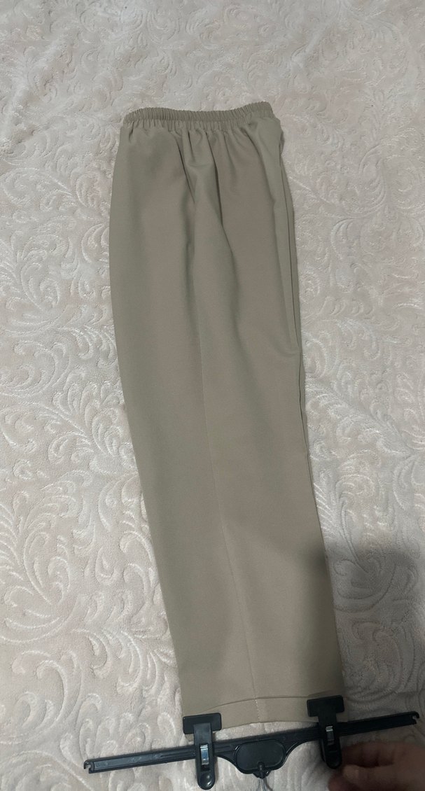 Bej renkte, midi boy, pilili ve regular fit kadın kumaş pantolon. Sentetik kumaştan yapılmıştır, sade ve minimalist tarzda günlük kullanım için uygundur.