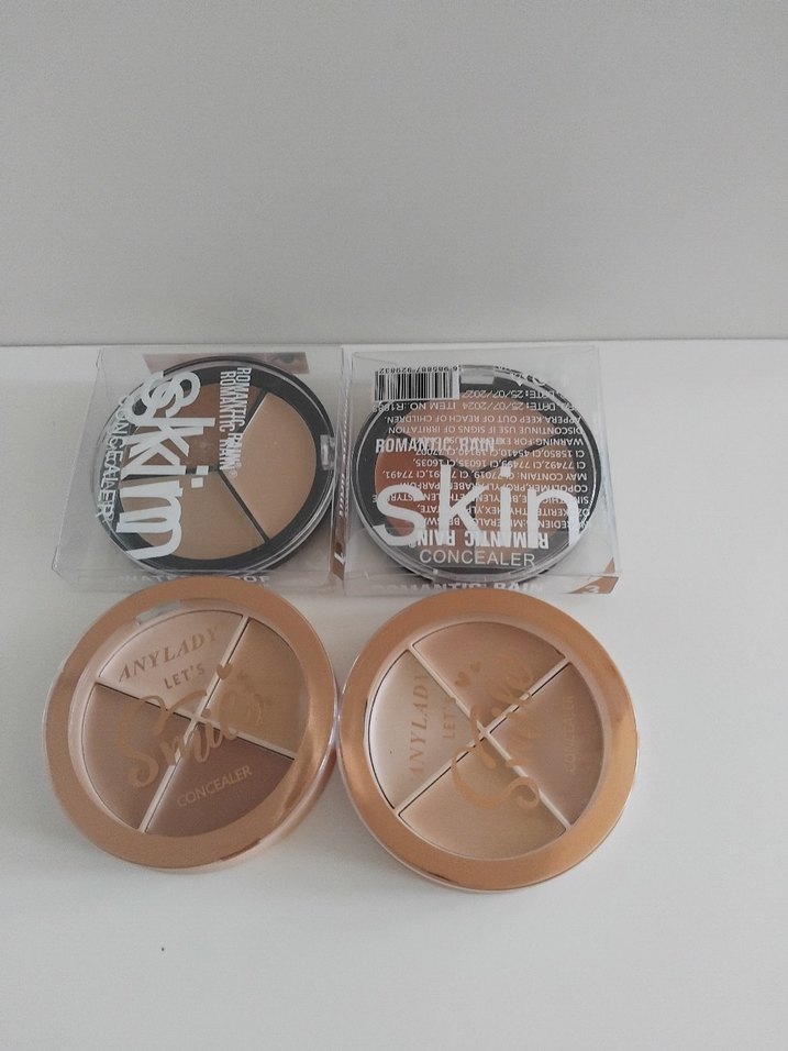 Bej tonlarında, açık tenlere uygun çoklu kapatıcı ve aydınlatıcı seti, doğal kapatıcılık ve hafif parlaklık sağlar.