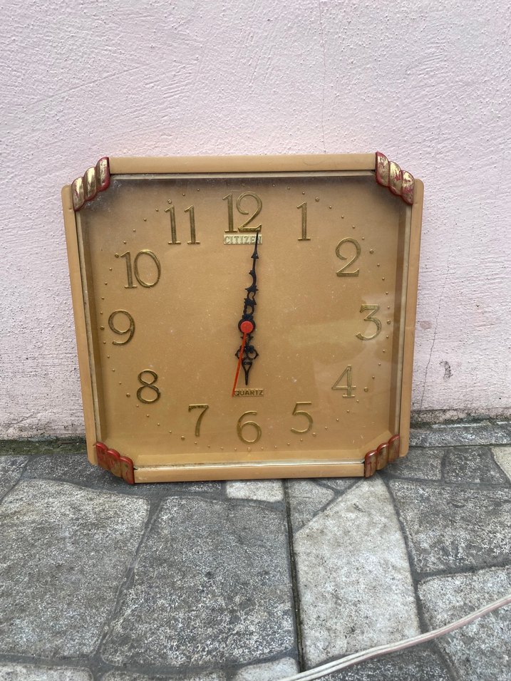 Bej renkli kare duvar saati, net rakam işaretleri ve vintage tarzı akrep yelkovan ile. Açık tonlarda klasik görünüme sahip. ⏰