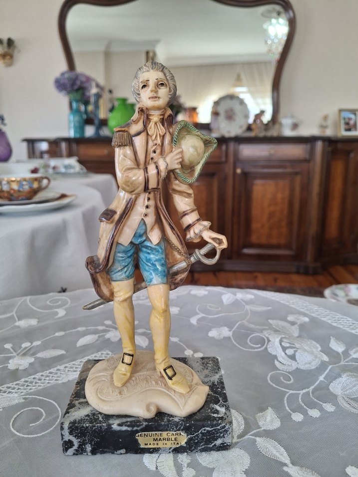 Bej renkli bu figürin, şapka ve baston tutan klasik bir beyefendiyi mermer kaide üzerinde gösterir. ️ İtalyan DEPOSE damgalı biblo...Limitli üretim..19 cm boy 9 cm en...Mermer kaideli....