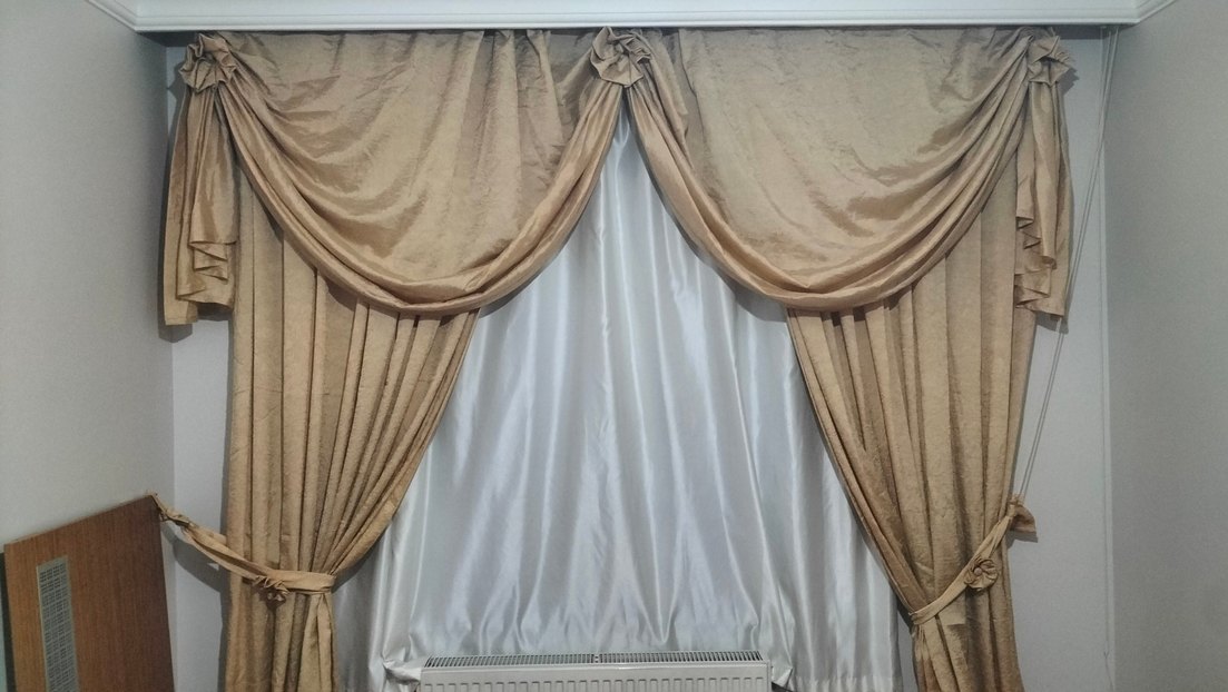 Bej renkli, klasik tarzda, desensiz perde
