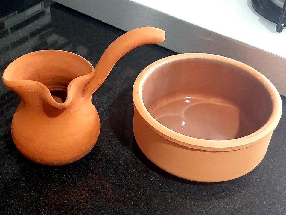 Bej Renkli Klasik Toprak Tencere ve Cezve