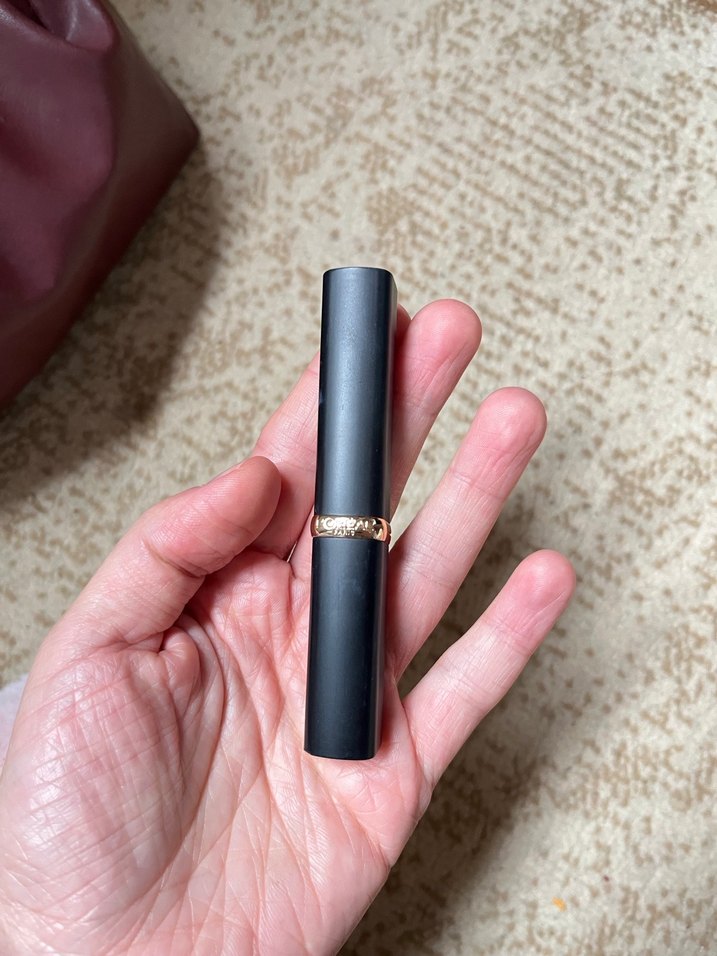 Altın detaylı siyah kutuda koyu ton bej ruj. Cesur bir dudak görünümü için uygundur.