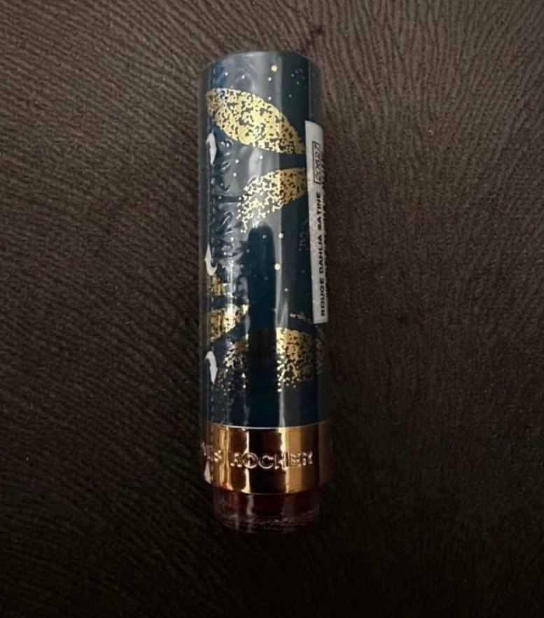 Altın detaylı koyu renkli kaplamaya sahip koyu kırmızı tonlarında ruj. Cesur dudaklar için uygundur.