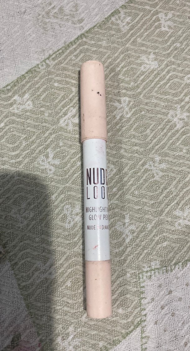 Bej renkte Nude Look aydınlatıcı kalemi, hafif ve doğal renk sağlar. "GHIGH" yazılı kalem, parlak bir görünüm için hassas uygulama sunar.
