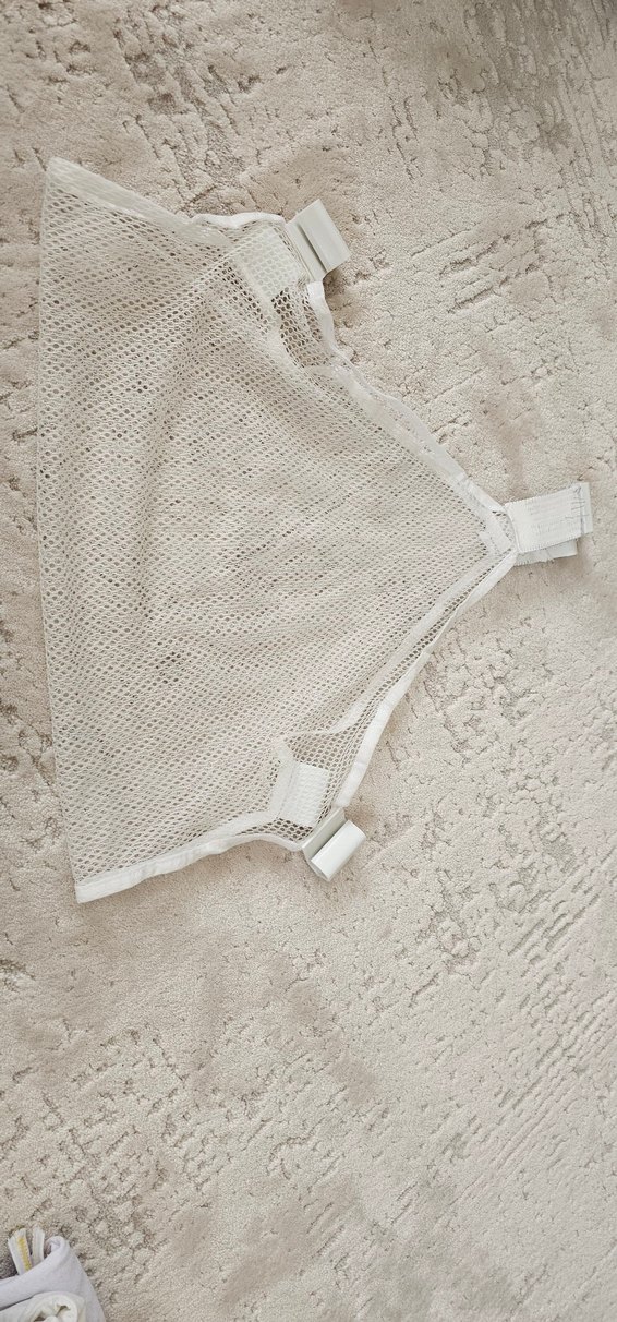 Yumuşak ve nefes alabilen örgü kumaştan yapılmış bej renkli bebek banyo filesi