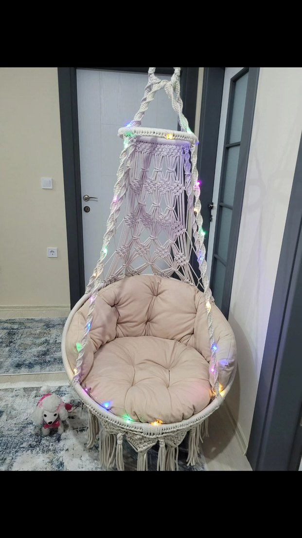 Bej Renkli Örgü Bebek Salıncağı