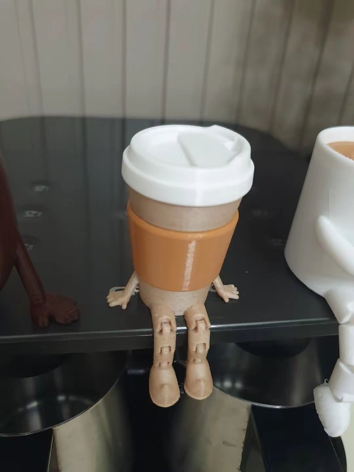 Beyaz kapaklı, kahverengi kılıflı ve hareketli bacakları olan bej renkte oturan figürin. ☕