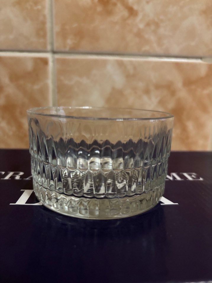 Parlak yüzeye sahip bej renkli cam kase, küçük porsiyonlar için uygundur. ✨
