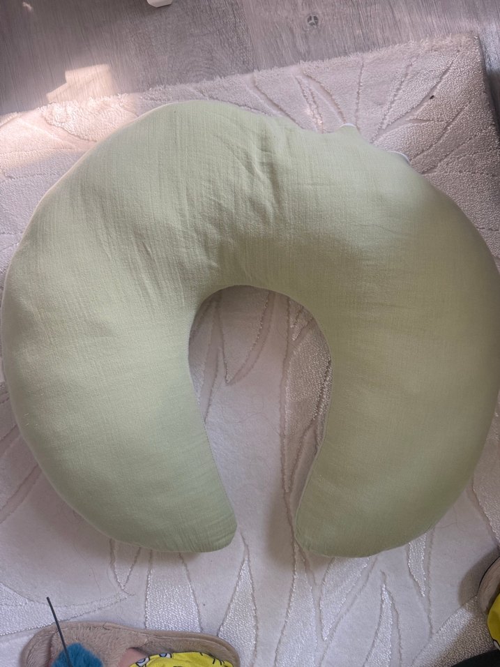 Yumuşak, desen içermeyen bej renkli pastel hamile ve emzirme yastığı, konfor ve destek sağlar.
