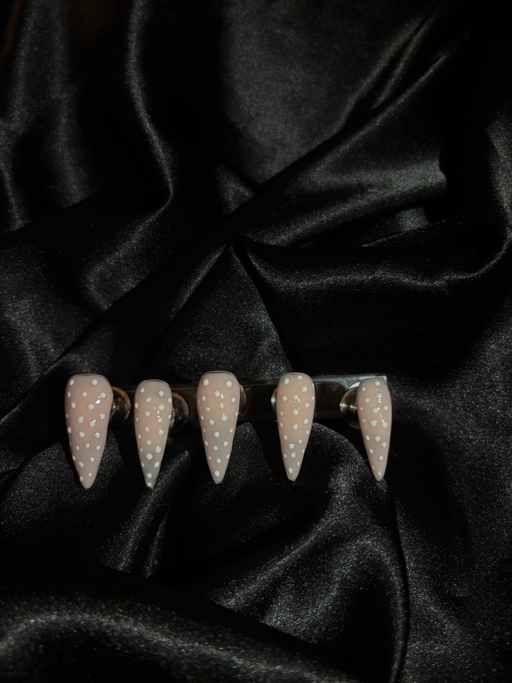 Bej Renkli Puantiyeli Jel Takma Tırnak