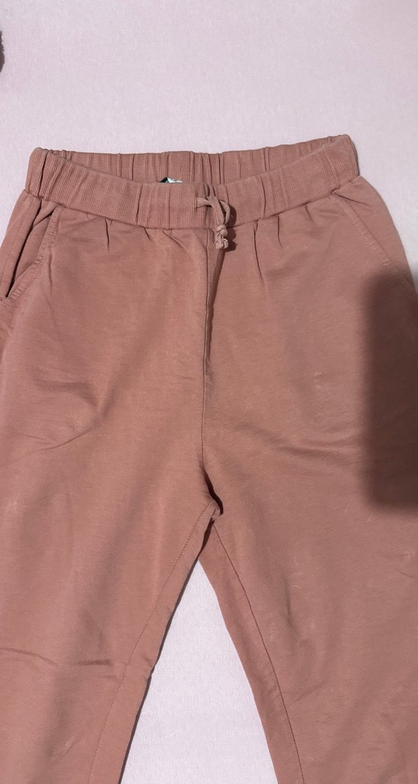 Bej renkte, rahat kesim midi boy kadın eşofman altı. Yumuşak sentetik kumaştan, elastik bel ve cep detaylı, günlük kullanım için uygun.