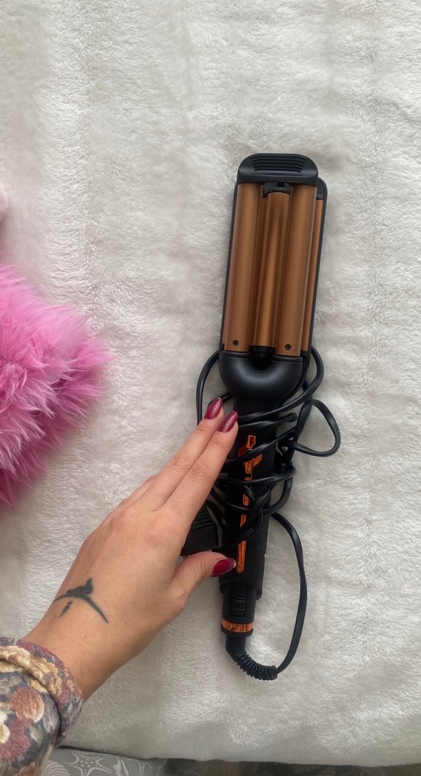 Üçlü varil tasarımlı, bej renk saç şekillendirici. Siyah sapı ve kablosu ile dalgalı saçlar oluşturur. Sıfır nerdeyse 1-2 kere kulandım. Aprilla marka