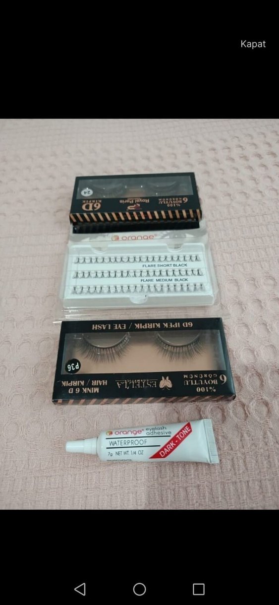 Bej renkli, koyu siyah uçlu takma kirpikler ve suya dayanıklı yapıştırıcı içerir. Farklı kirpik modelleriyle doğal görünüm sağlar. ️