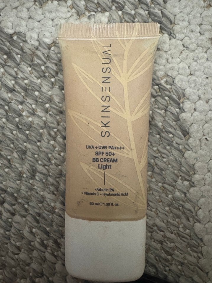 Hafif bej renkli BB krem, SPF 50+ koruma, UVA ve UVB filtresi içerir. Arbutin, C Vitamini ve Hyaluronik Asit ile cilt bakımı sağlar.