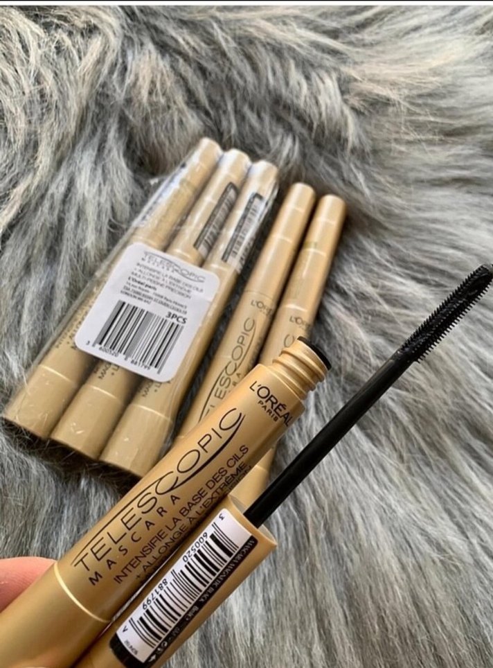 Bej renginde, yoğun siyah bazlı Telescopic maskara. İnce fırçası sayesinde kirpikleri belirginleştirir. Marka: Loreal. (1.adetin fiyatıdir)