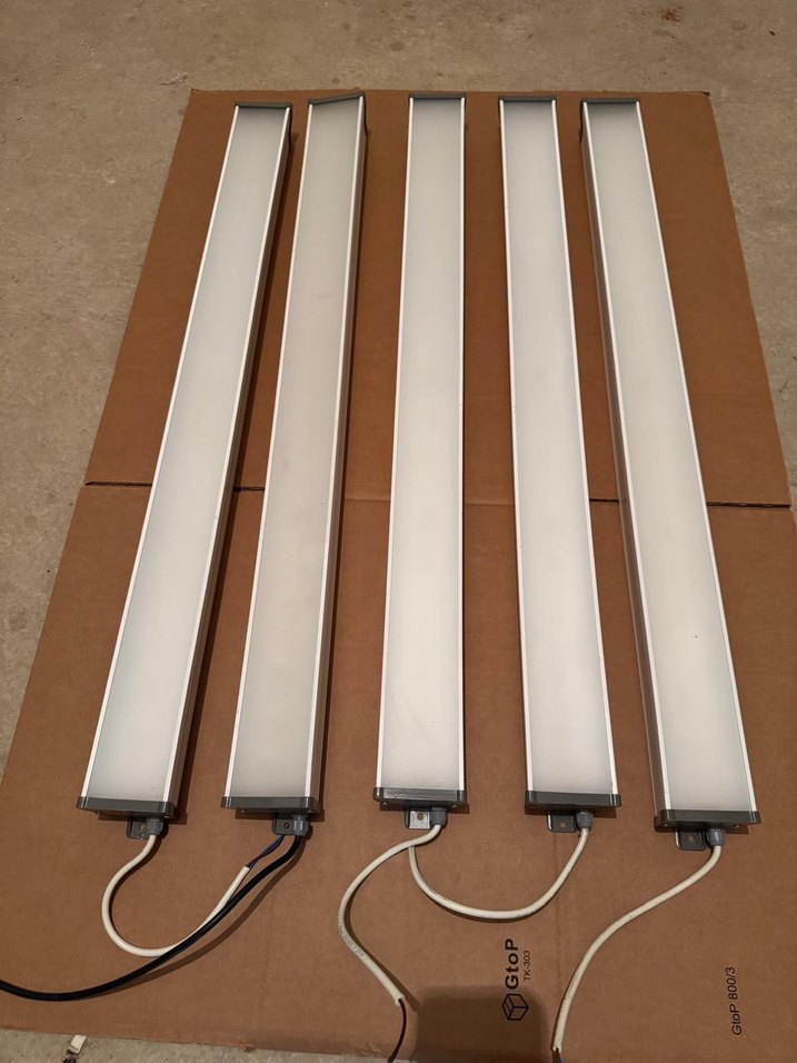 Bej renkli uzun LED lambalardan oluşan 5'li set, beyaz kablolarla birlikte, çeşitli aydınlatma ihtiyaçları için uygundur. tane fiyat