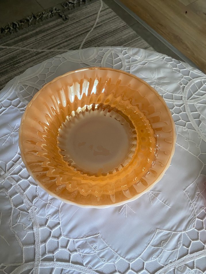 Bej renkli, yuvarlak ve dalgalı kenar detayına sahip gıda kabı. Çeşitli yiyeceklerin saklanması için uygundur. ️
