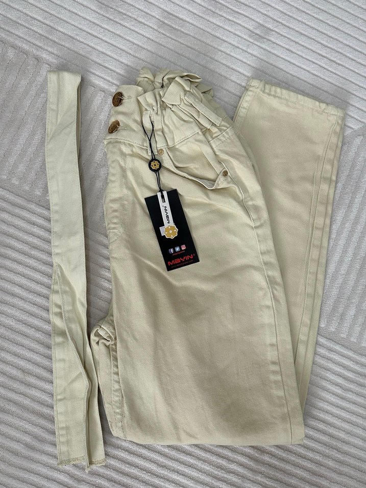 Bej renkte kemerli pantolon