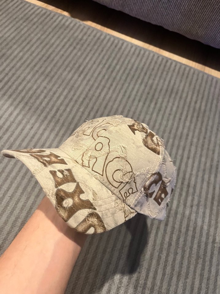 Sentetik kumaştan bej renkli, tokalı ve retro desenli kadın sokak şapkası. Bohem ve hippie tarzına uygun.