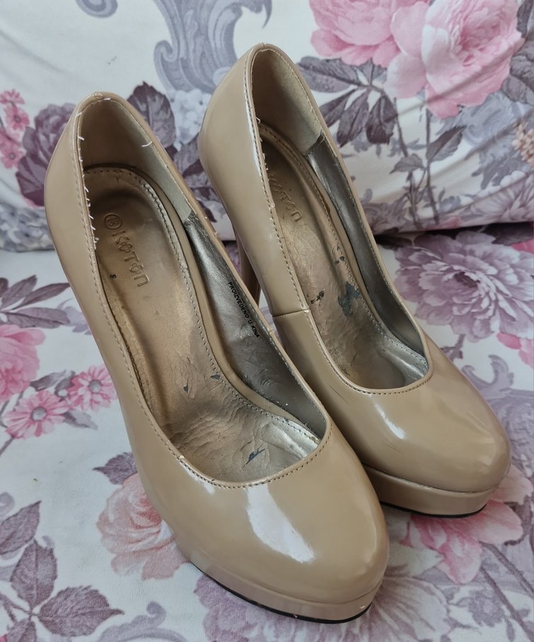 Bej Rugan platform topuklu ayakkabı