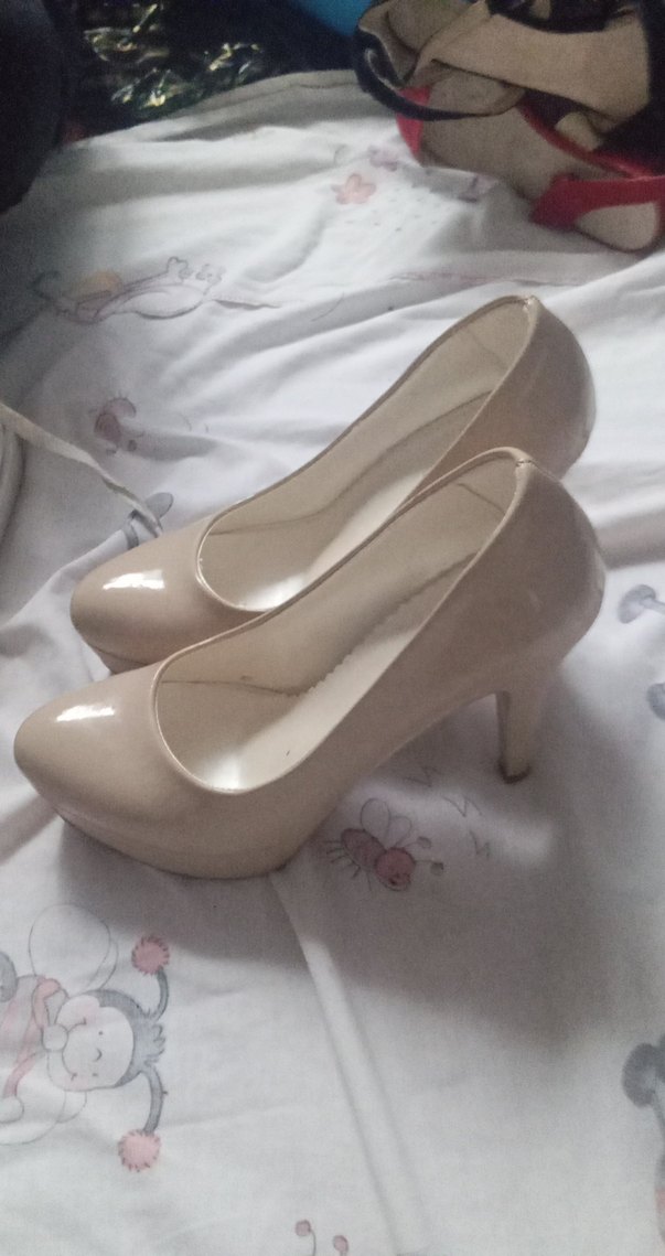 Bej rugan görünümlü kauçuk stiletto topuklu ayakkabılar. Düğünler için uygun, klasik ve desensiz tasarıma sahip, çağdaş ve zahmetsiz şıklık sunar.