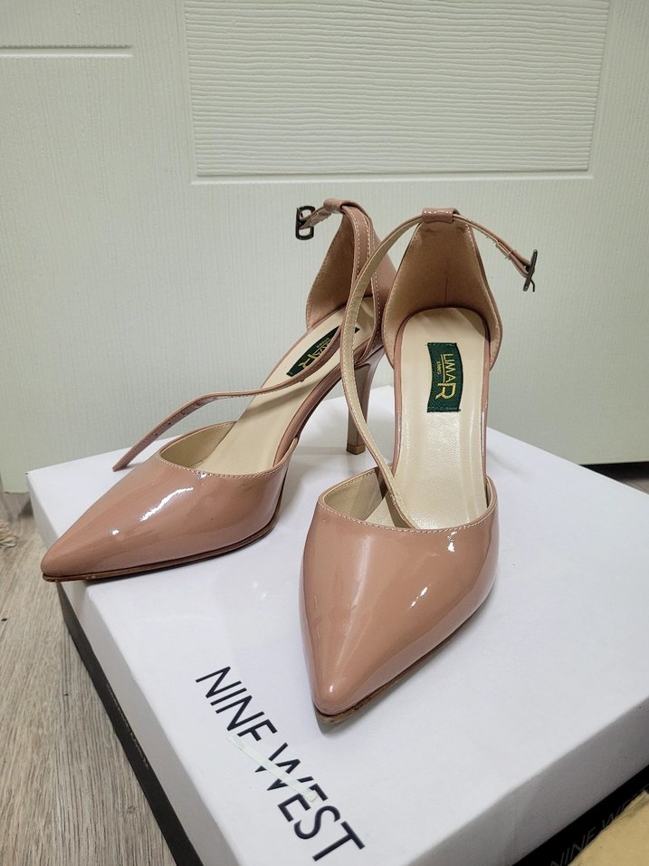 Bej renkte, tokalı bantlı, lastik malzemeden modern klasik tasarımlı stiletto topuklu ayakkabılar. Ofis kullanımına uygun, desensiz ve pastel tonda. Sadece 1 kez evde 3-4 saat giyildi.