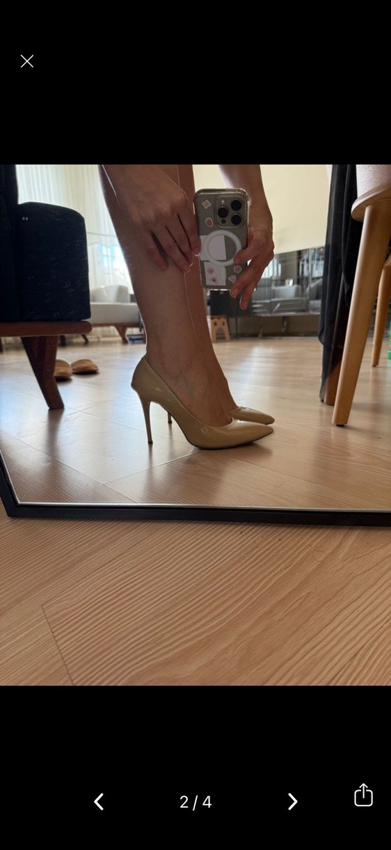 Bej renginde, rugan görünümlü kauçuk malzemeden yapılmış, ince stiletto topuklu kadın ayakkabısı. Ofis için uygun, çağdaş tarzda.