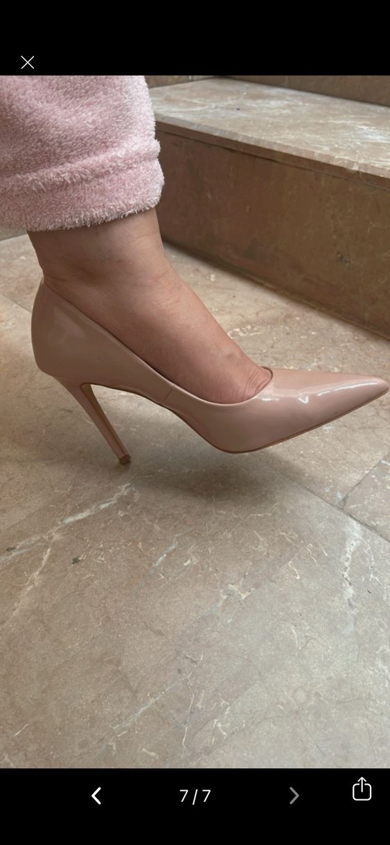 Bej renkli, rugan görünümlü, topuklu kadın ayakkabısı. Minimalist ve desen içermeyen tasarımıyla ofis için şık bir tercih. #topuklu #stiletto