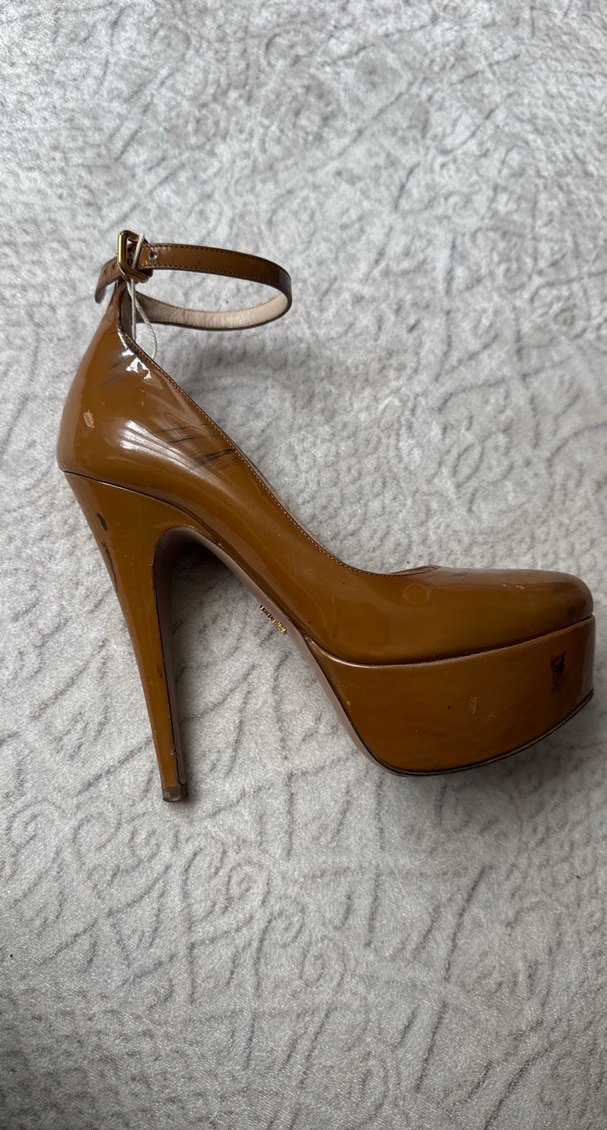 Bej parlak rugan deriden yapılmış, yılan desenli platform topuklu stiletto. Ayak bileği tokası ile klasik şıklığı modern tarzla birleştirir, ofis için uygundur. 24.7 14.5