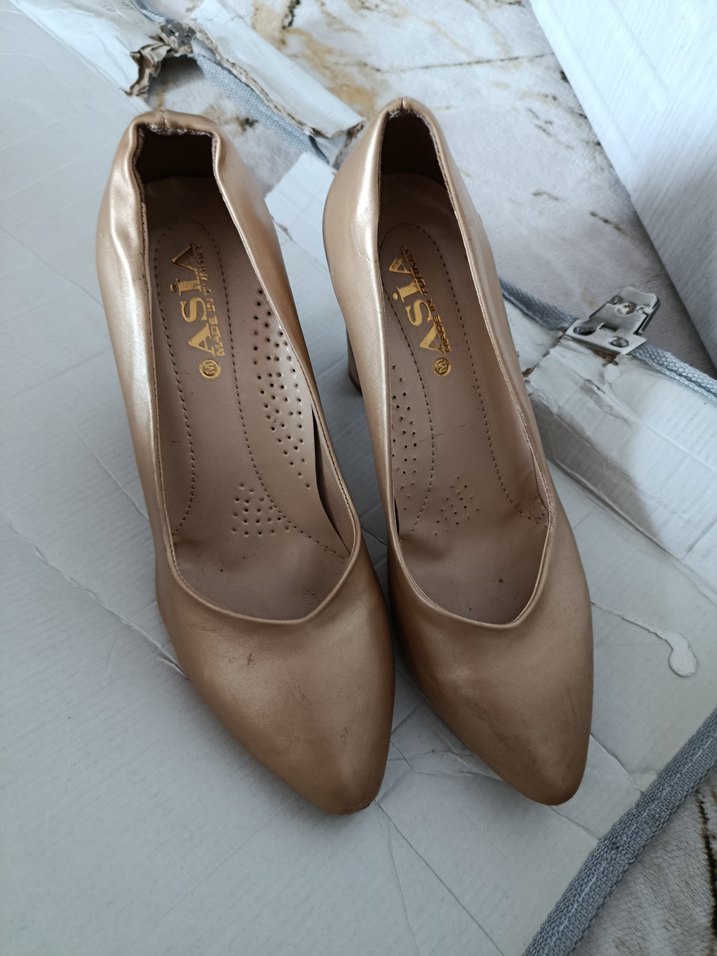 Bej renginde, rugan görünümlü, yılan desenli klasik stilettolar, kauçuk malzemeden üretilmiştir.