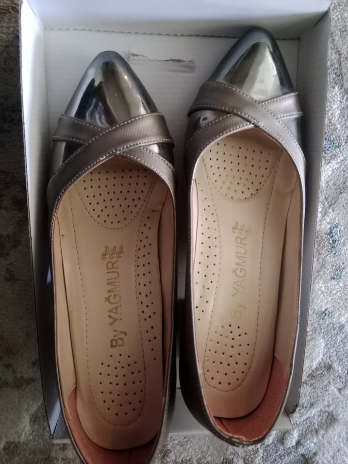Bej renkli, lastik malzemeden dolgu topuklu kadın babet. Tokalı ve sade tasarımıyla günlük kullanıma uygun klasik şıklık sunar.