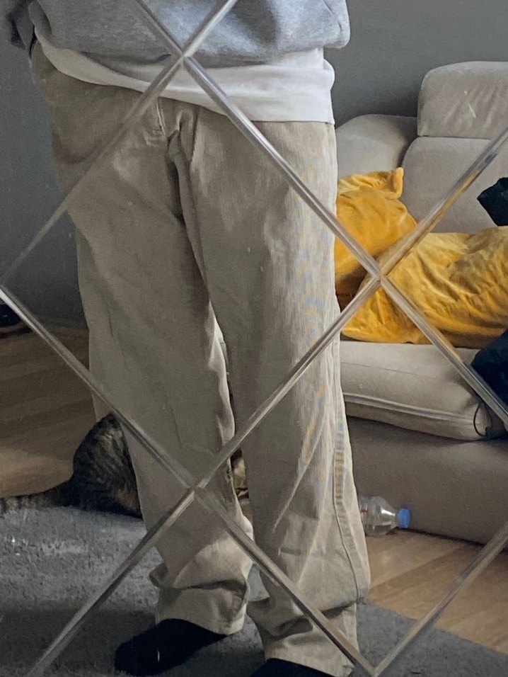 Bej renkte, midi boy ve salaş kesime sahip kadın pantolon. Günlük kullanıma uygun, rahat ve şık bir tarz sunar. Ufak defoları var bunun için teklife açıktır.