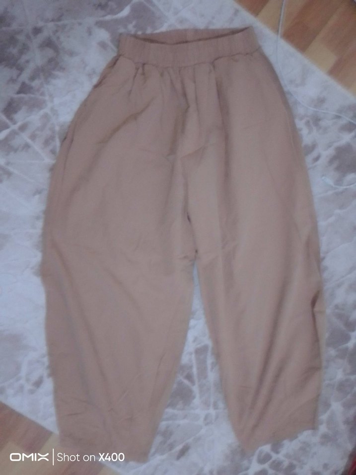 Bej renkli, yumuşak keten kumaştan yapılmış salaş kesim kadın pantolon. Midi boyu ve rahat normcore tarzıyla günlük kullanıma uygundur. Pastel tonlarda, zahmetsiz şıklık sunar. Optik yazı: "DMIshot on X400".