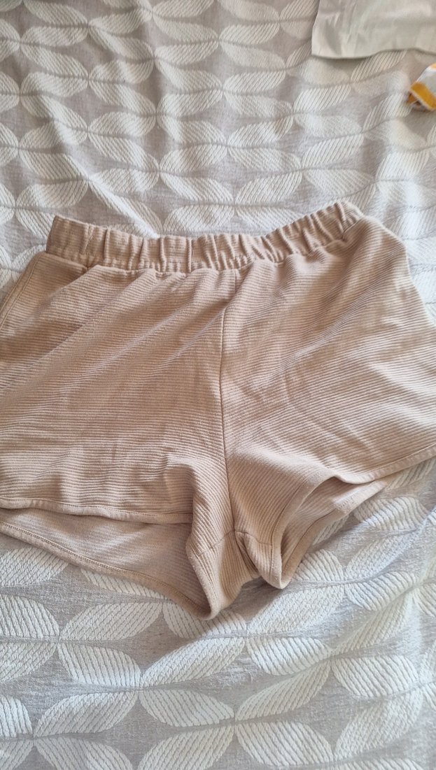 Nefes alabilen keten kumaştan, elastik bel bantlı bej salaş mini şort. Rahat sokak stili için zahmetsiz şıklık sunar.