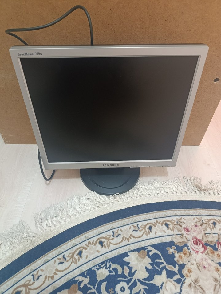 Kare ekranlı, sağlam tabanlı bej Samsung SyncMaster 720n monitör. Günlük bilgisayar kullanımı için uygun. ️