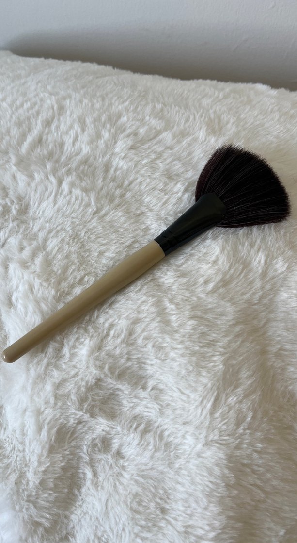 Bej saplı ve koyu kıllı makyaj fırçası, pürüzsüz uygulama sağlar. ️